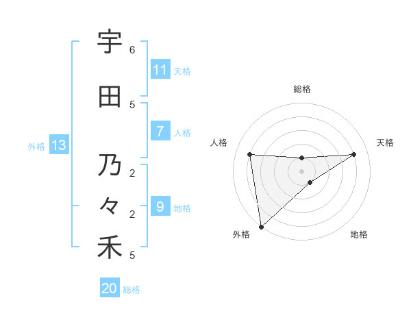 宇田 乃々禾さんを姓名の画数から五運を鑑定