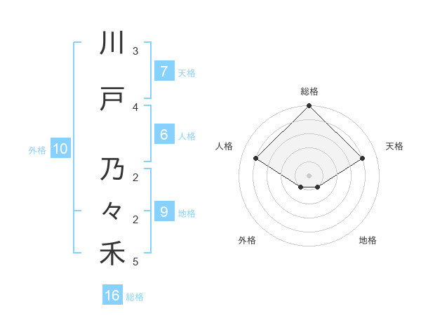 川戸 乃々禾さんを姓名の画数から五運を鑑定