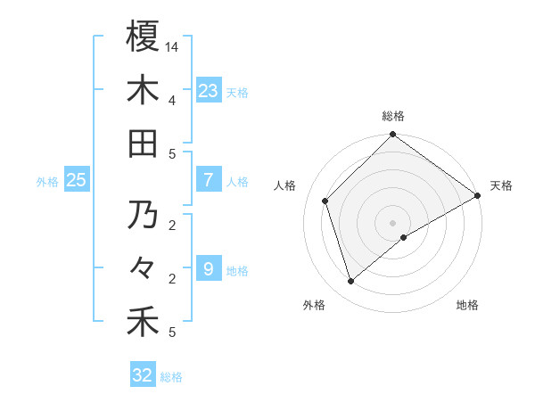榎木田 乃々禾さんの総格は32画の5点!