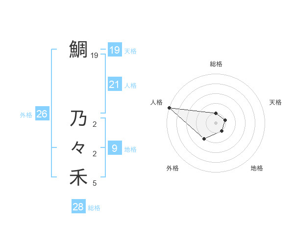 鯛 乃々禾さんを姓名の画数から五運を鑑定