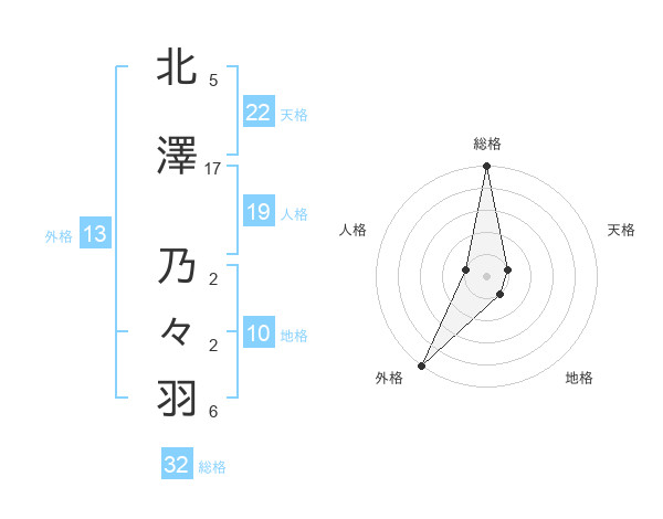 北澤 乃々羽さんを姓名の画数から五運を鑑定