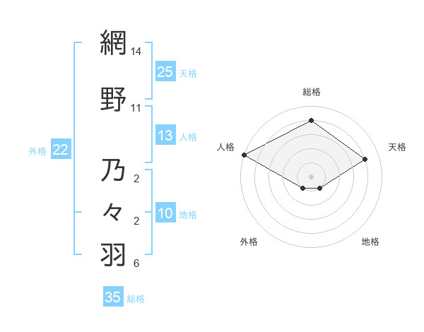 網野 乃々羽さんを姓名の画数から五運を鑑定