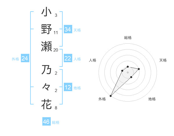 小野瀬 乃々花さんを姓名の画数から五運を鑑定