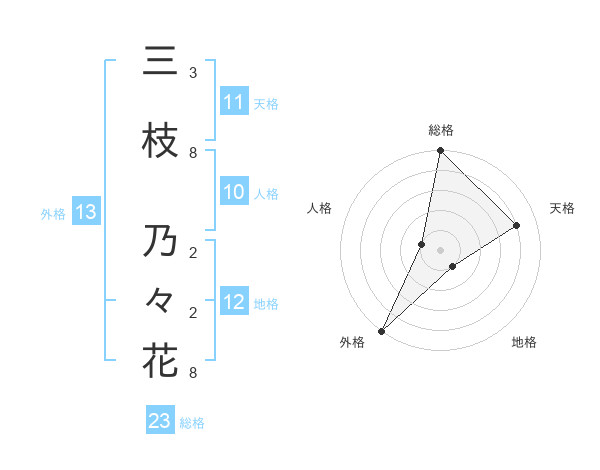 三枝 乃々花さんを姓名の画数から五運を鑑定