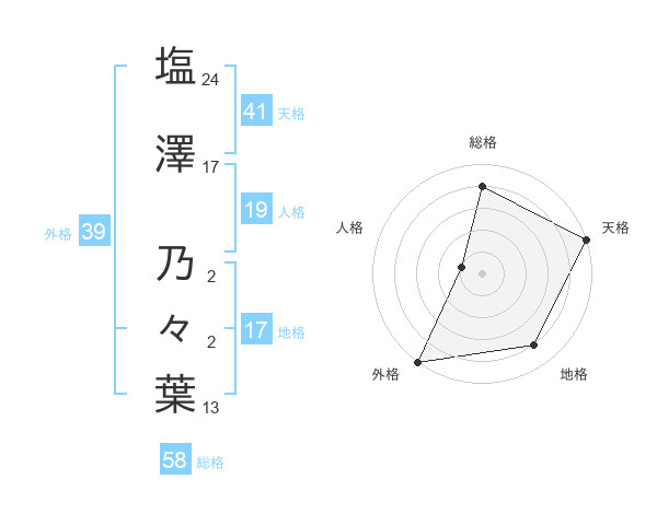 塩澤 乃々葉さんを姓名の画数から五運を鑑定