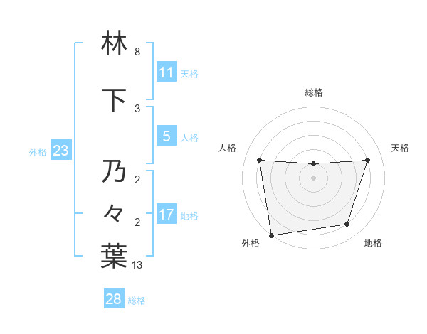 林下 乃々葉さんを姓名の画数から五運を鑑定