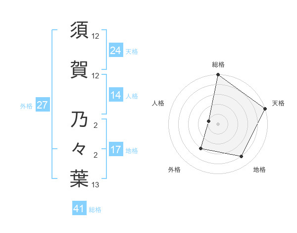 須賀 乃々葉さんを姓名の画数から五運を鑑定