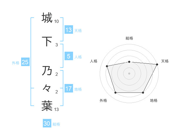 城下 乃々葉さんを姓名の画数から五運を鑑定