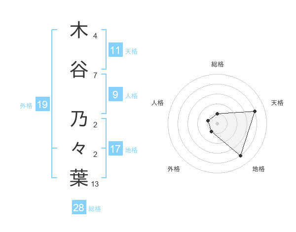 木谷 乃々葉さんを姓名の画数から五運を鑑定