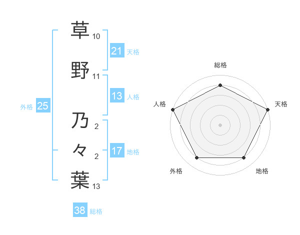 草野 乃々葉さんを姓名の画数から五運を鑑定