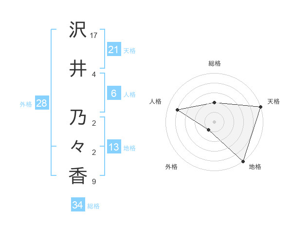 沢井 乃々香さんの天格は21画の5点!