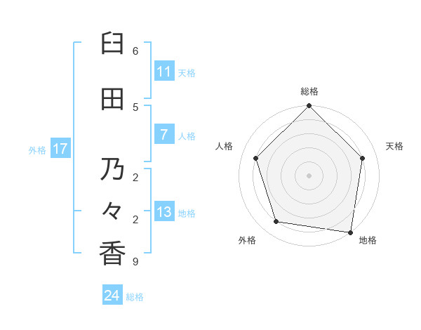 臼田 乃々香さんを姓名の画数から五運を鑑定