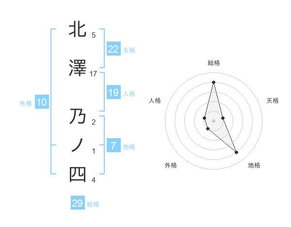 北澤 乃ノ四さんの総格は29画の4点