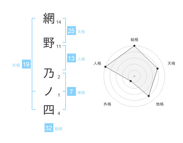 網野 乃ノ四さんを姓名の画数から五運を鑑定