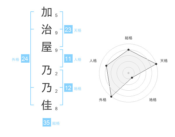 加治屋 乃乃佳さんの天格は23画の5点!