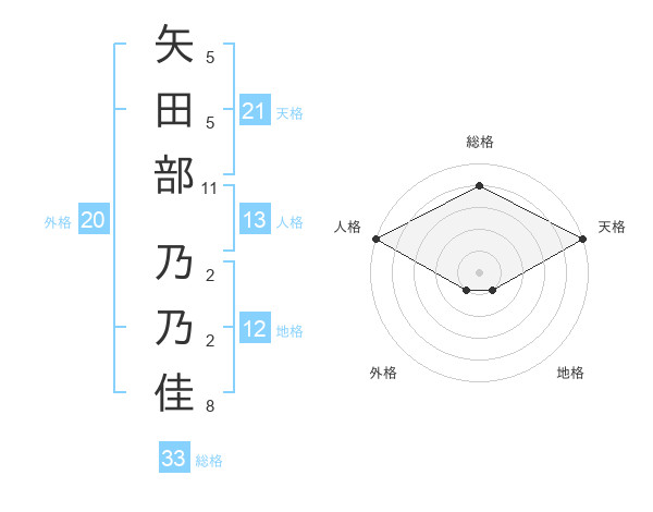 矢田部 乃乃佳さんの天格は21画の5点