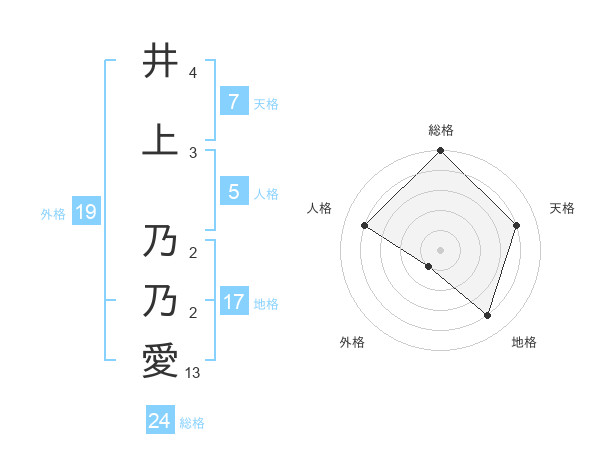 井上 乃乃愛さんを姓名の画数から五運を鑑定