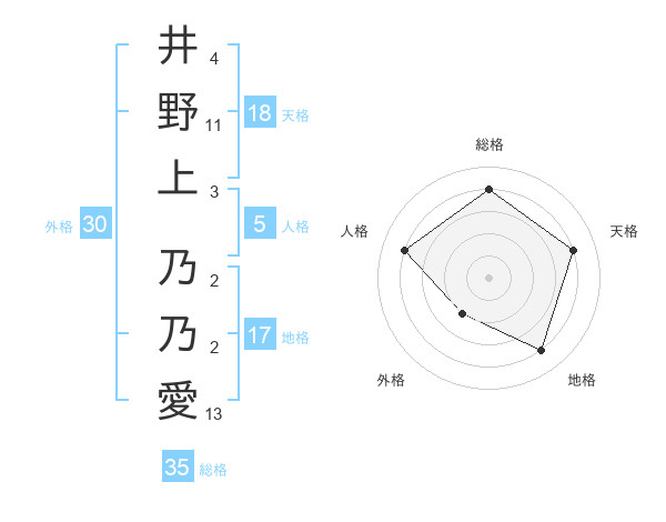 井野上 乃乃愛さんの総格は35画の4点!