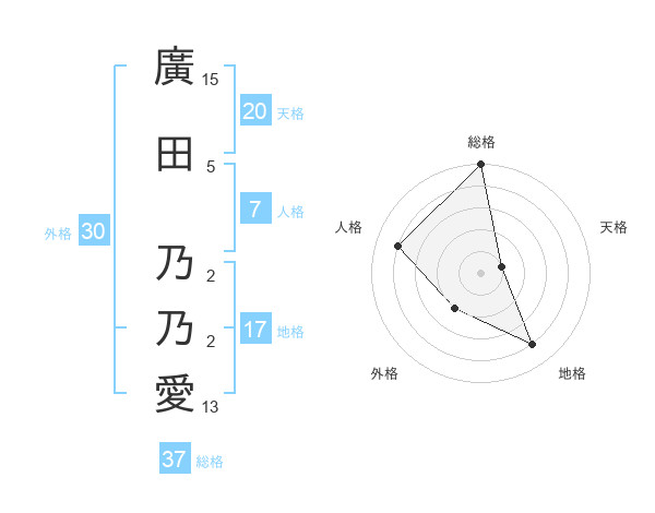 廣田 乃乃愛さんの総格は37画の5点!