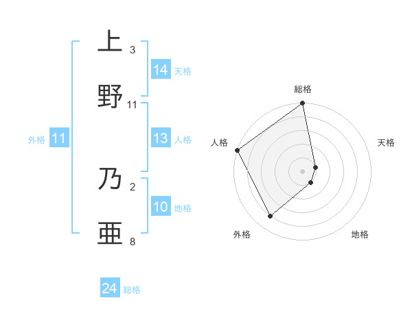 上野 乃亜さんの外格は11画の4点!