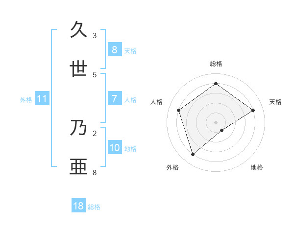 久世 乃亜さんを姓名の画数から五運を鑑定