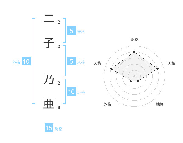 二子 乃亜さんを姓名の画数から五運を鑑定