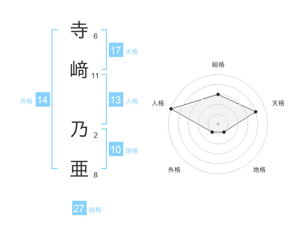 寺﨑 乃亜さんの天格は17画の4点!