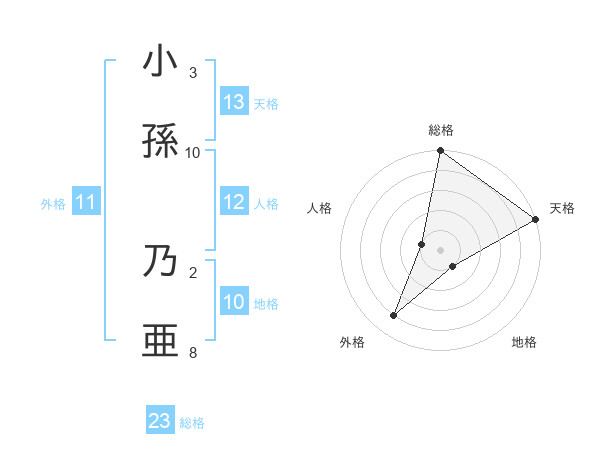 小孫 乃亜さんの総格は23画の5点!