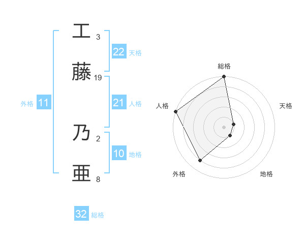 工藤 乃亜さんを姓名の画数から五運を鑑定