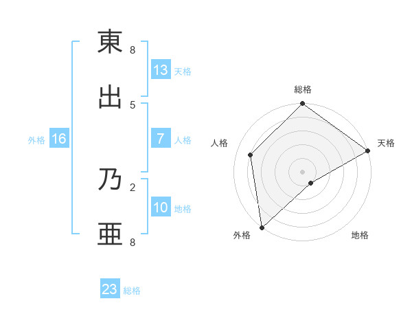 東出 乃亜さんの総格は23画の5点!