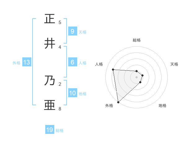 正井 乃亜さんの外格は13画の5点!