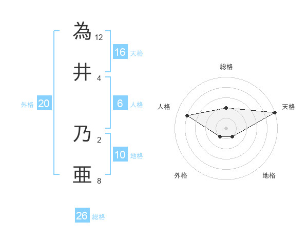 為井 乃亜さんを姓名の画数から五運を鑑定