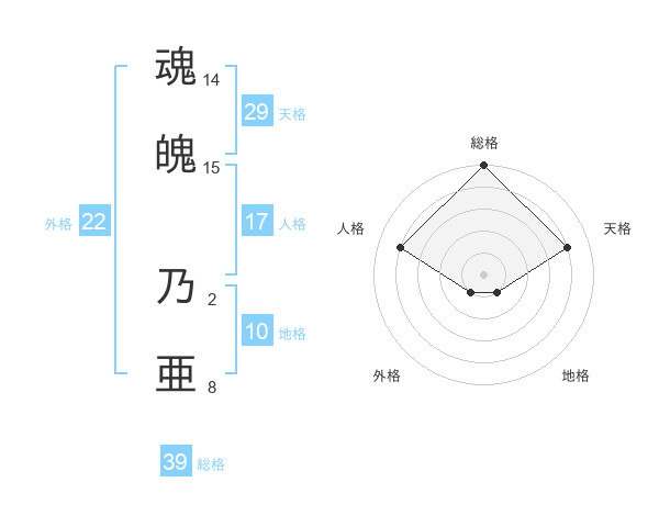 魂魄 乃亜さんの総格は39画の5点!