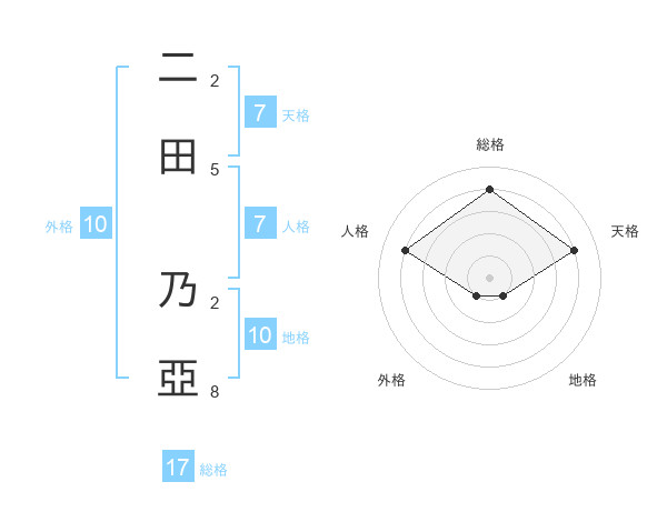 二田 乃亞さんの総格は17画の4点!