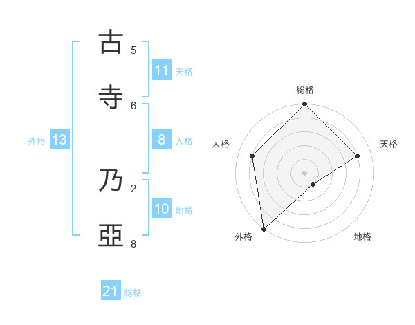 古寺 乃亞さんを姓名の画数から五運を鑑定