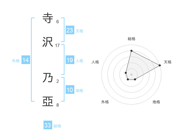 寺沢 乃亞さんの総格は33画の4点!
