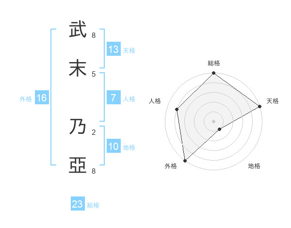 武末 乃亞さんの総格は23画の5点!