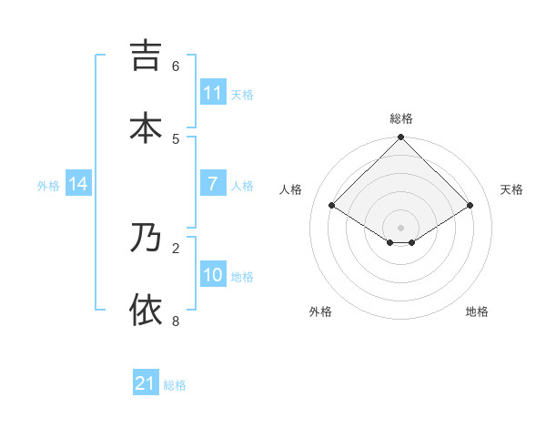 吉本 乃依さんを姓名の画数から五運を鑑定