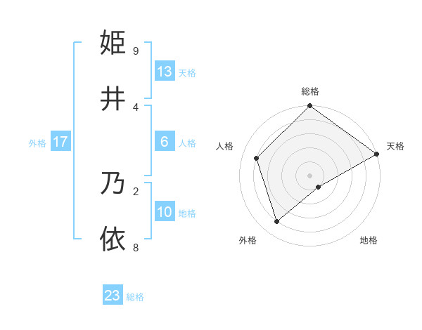 姫井 乃依さんを姓名の画数から五運を鑑定