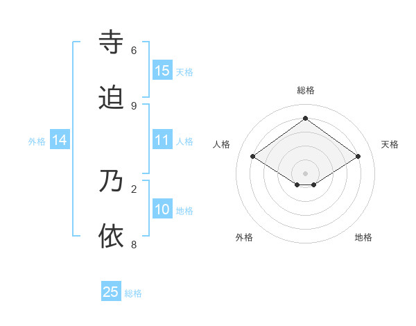 寺迫 乃依さんを姓名の画数から五運を鑑定