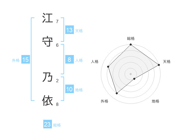 江守 乃依さんの総格は23画の5点!