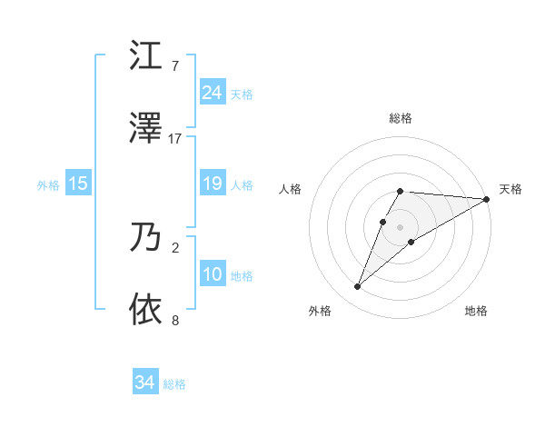 江澤 乃依さんの天格は24画の5点!