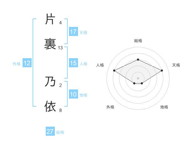 片裏 乃依さんの天格は17画の4点!