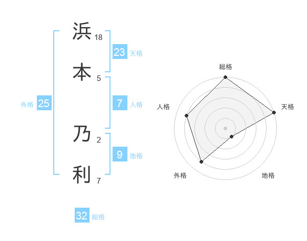 浜本 乃利さんの総格は32画の5点!