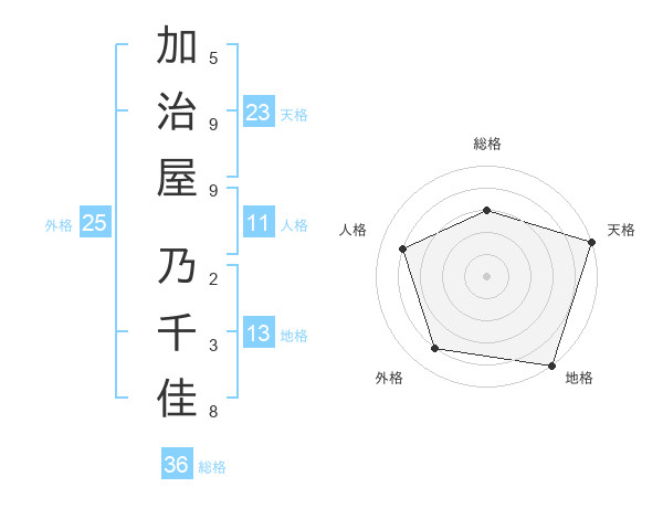 加治屋 乃千佳さんを姓名の画数から五運を鑑定
