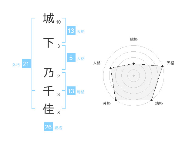 城下 乃千佳さんの地格は13画の5点!