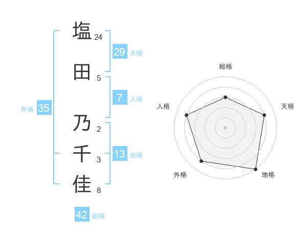 塩田 乃千佳さんを姓名の画数から五運を鑑定