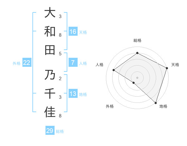 大和田 乃千佳さんを姓名の画数から五運を鑑定