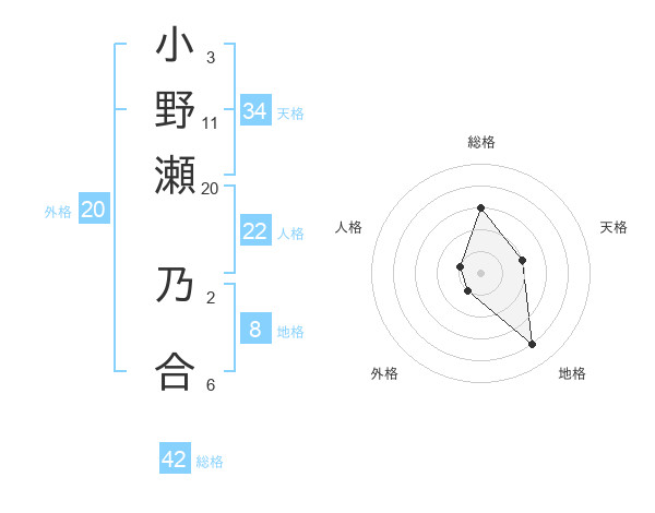 小野瀬 乃合さんを姓名の画数から五運を鑑定