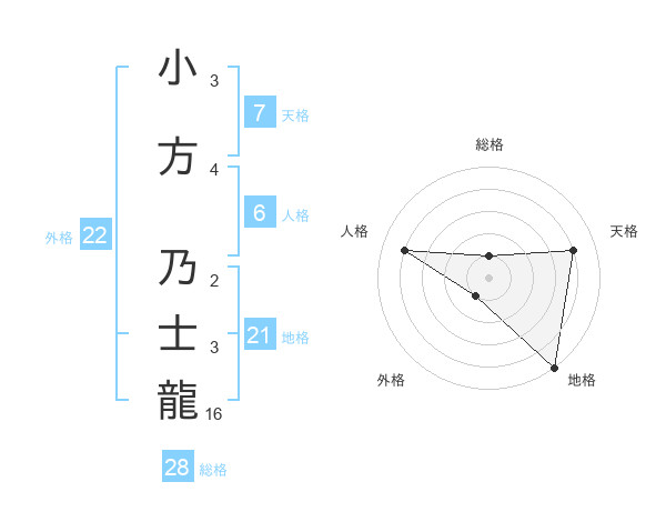小方 乃士龍さんを姓名の画数から五運を鑑定